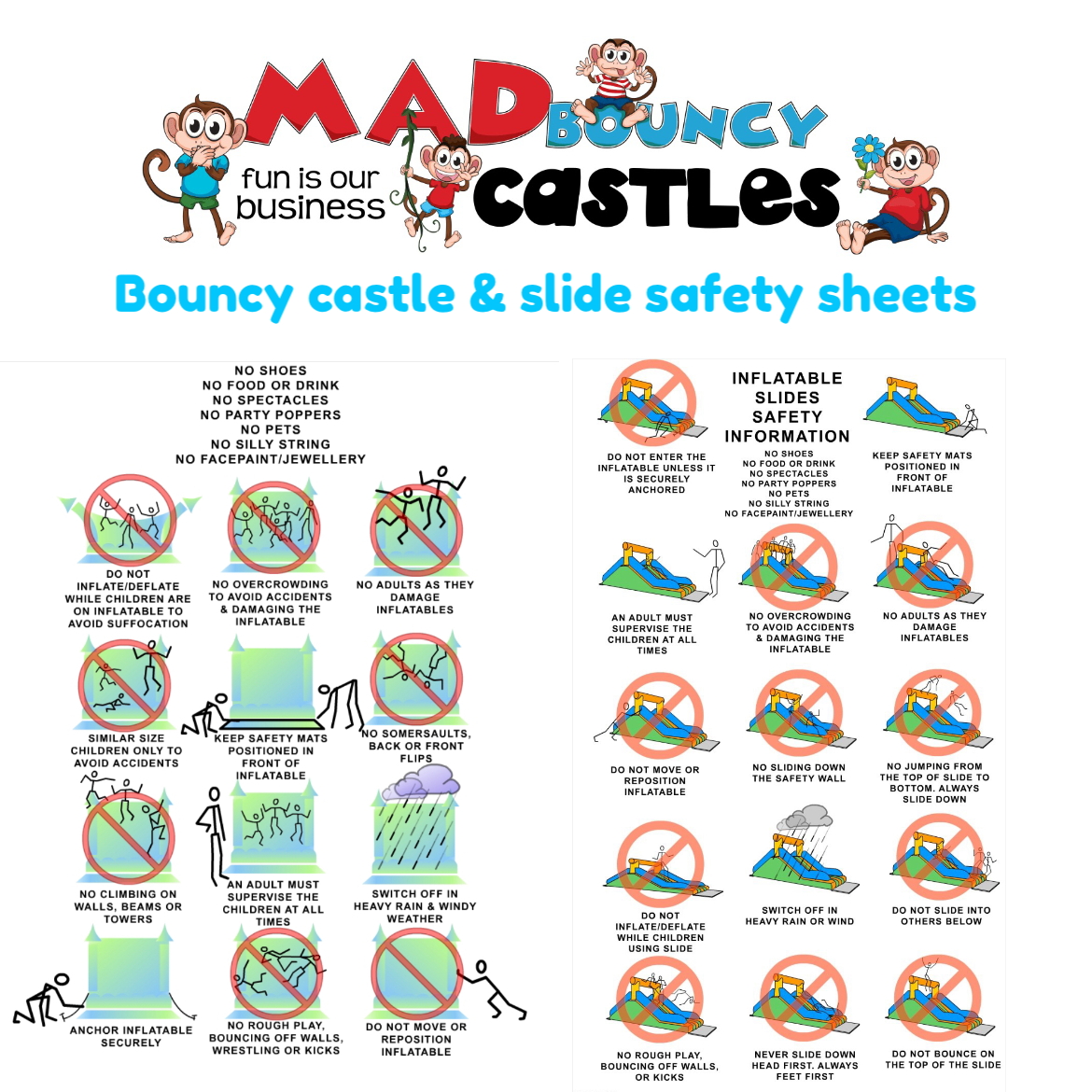 - Please read and understand all the safety information supplied including the cartoon safety sheets before using the inflatable(s), bouncy castle(s), Soft Play.
