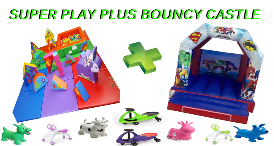 Soft Play - Our super new soft play set is the ideal add on as a package with one of our bouncy castles or bounce slides, toddlers can explore and play in a safe padded area which comes with - soft shapes, ball pond and two sit on toys and happy hopperz.