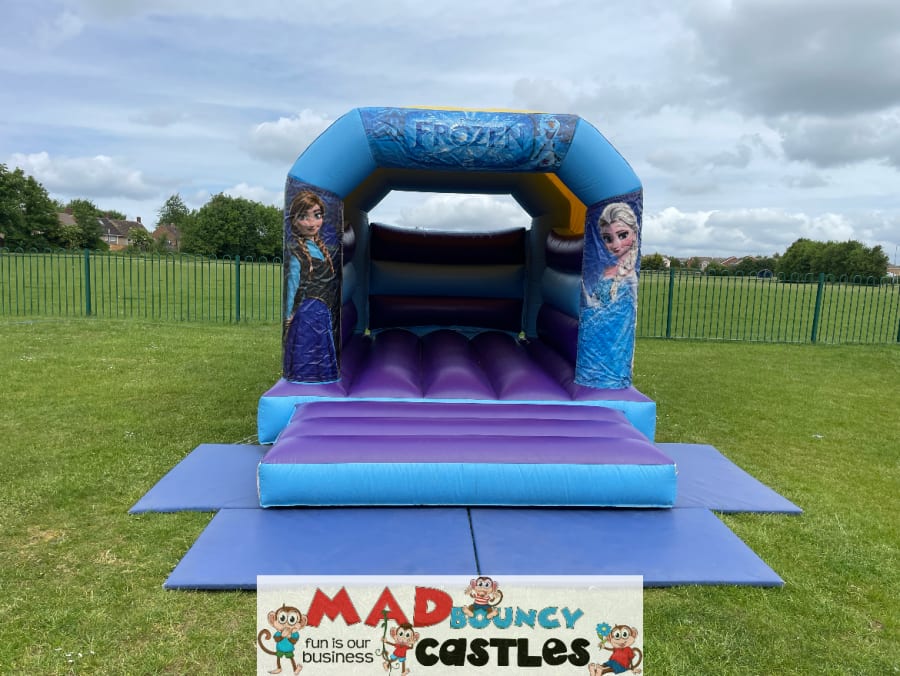 The ideal bouncy castle for all types of events and party’s with it's frozen theme and size. Excellent style castle as its open so you can watch the kids play! Medium sized blue and purple frozen bouncy castle, which will fit in most types of gardens and venues.