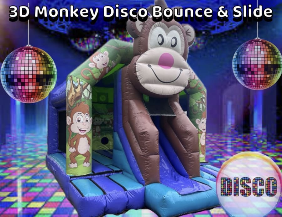 3D Disco Monkey Bounce & Slide available to hire in Northampton.