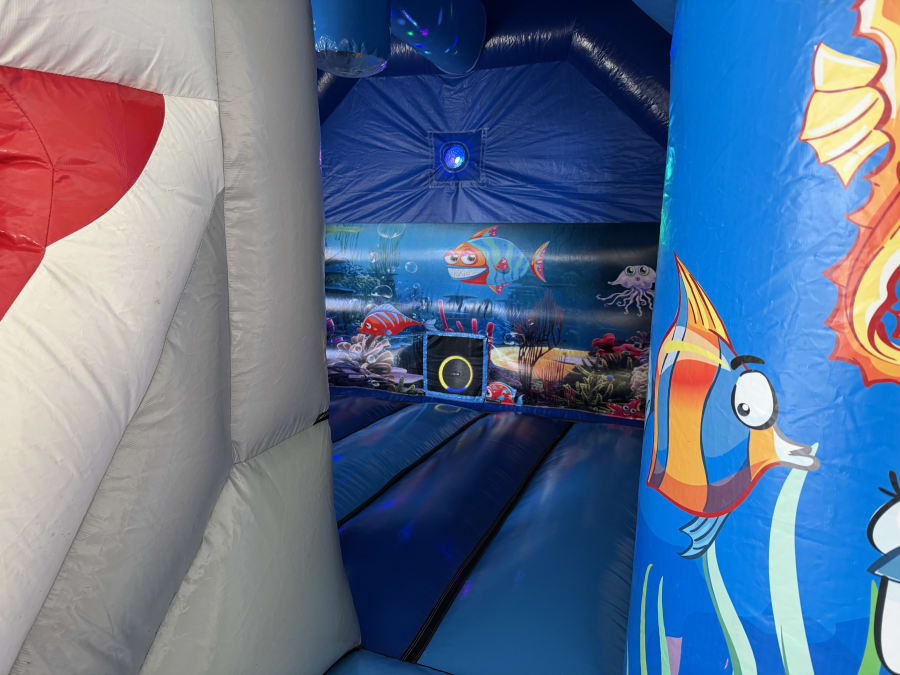3D Disco Shark Bounce & Slide available to hire in Northampton.