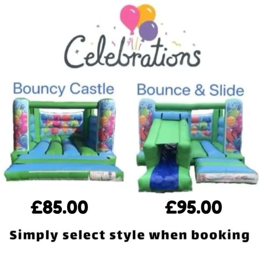 Hello Party People, Check Out Our Celebrations Themed Bouncy Castle & Bounce & Slide.