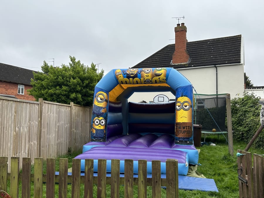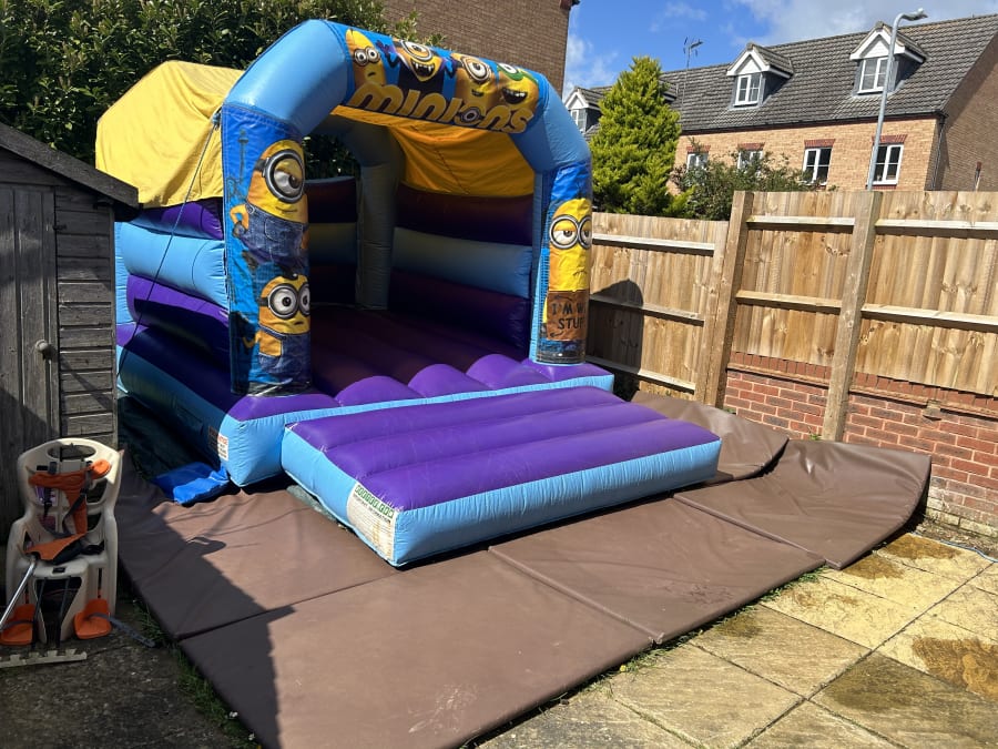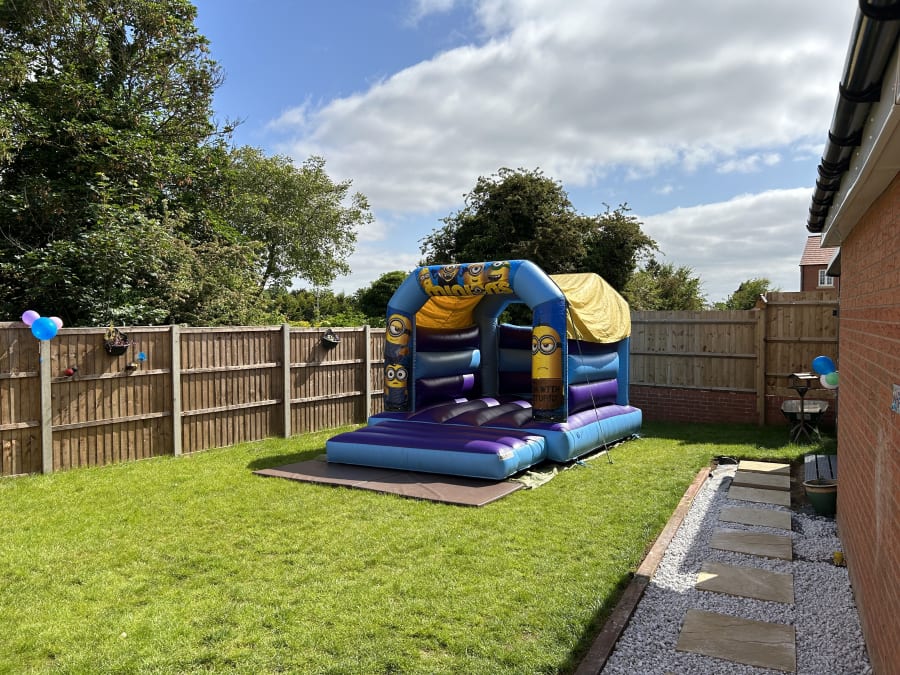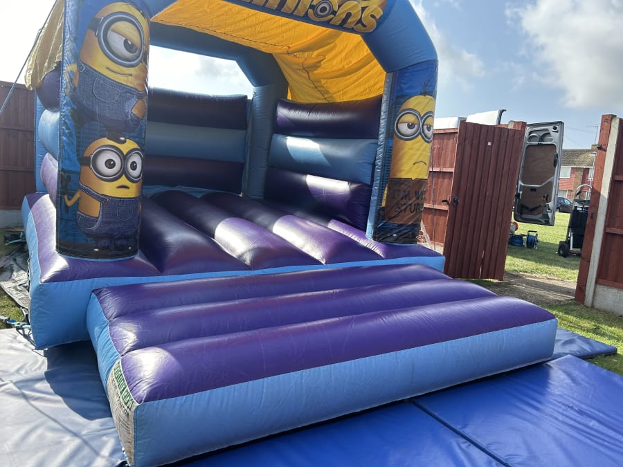 Check out our blue & purple minions themed bouncy castle