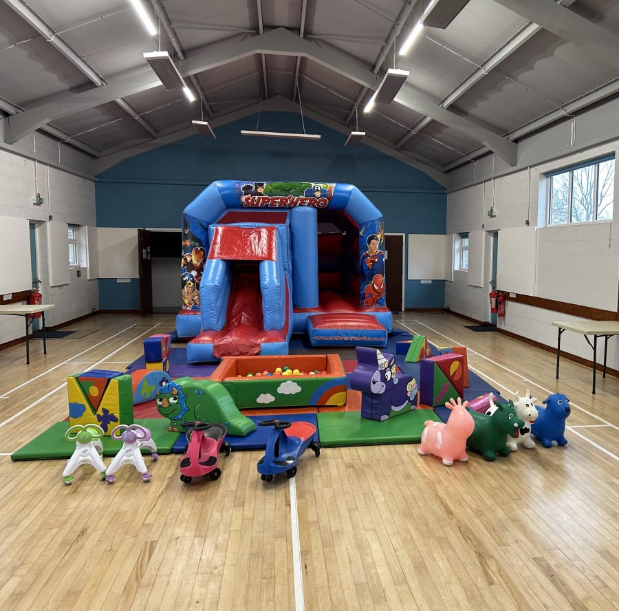 Is the perfect place to hold a party or event and comes with all the amenities needed, such as a kitchen, tables and chairs including a nice sized hall which can accommodate a good selection of our bouncy castles - with a large carpark.