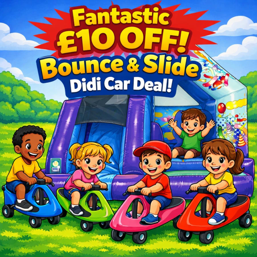 Bounce and Slide: Want double the fun with one of our Bounce And Slides these are excellent if your looking for something a little different all the fun of a bouncy castle plus the bonus of a mini slide to zip down. They all come with fitted covers ideal for sun shades or to keep them showers at bay! The Orignal Didi Car:A unique, self propelled ride-on toy for children of all ages. Simply turning the wheel left and right moves the didi car. No pedals, motors, batteries, or greasy chains. It's a magical mystery car that fuels the imagination while helping children keep fit and having fun.