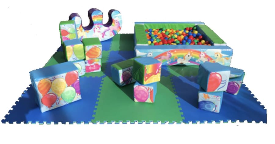 Soft Play - Our soft play sets are the ideal add on as a package with one of our bouncy castles or bounce slides, toddlers can explore and play in a safe padded area which comes with - soft shapes, ball ponds, rockers.