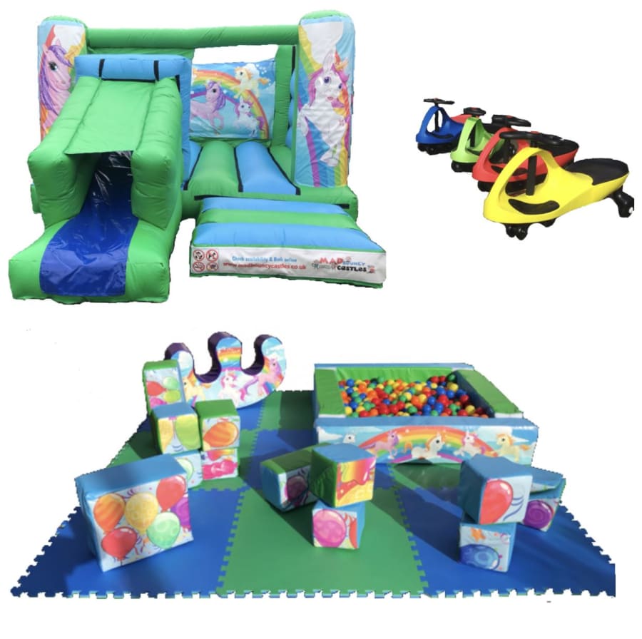 This Package is ideal if you have mixed age range of children attending, the soft play area for toddlers, and then the bouncy castle for the bigger children. Everything is party themed so perfect for all sorts of parties or events.