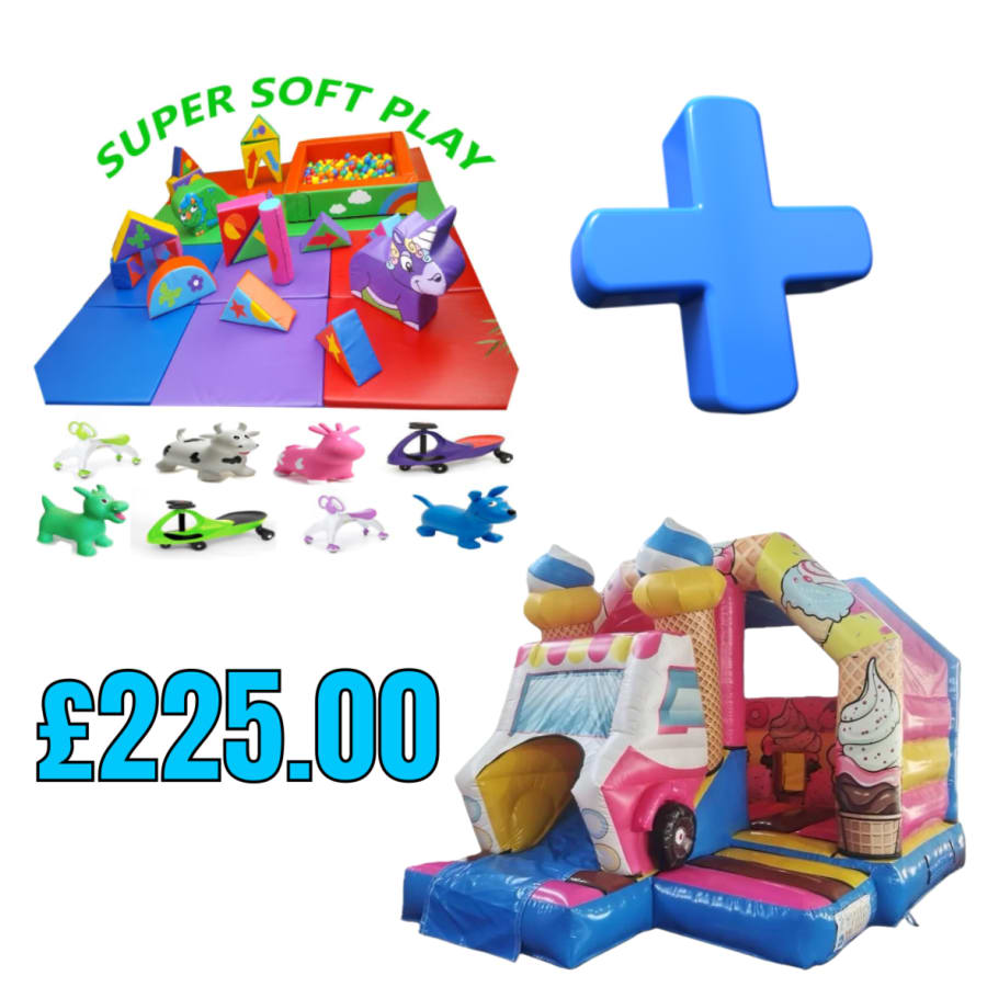 This Package is ideal if you have mixed age range of children attending, the soft play area for toddlers, and then the bounce & slide for the bigger children.
